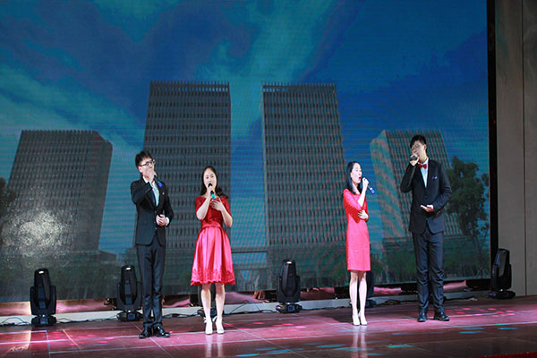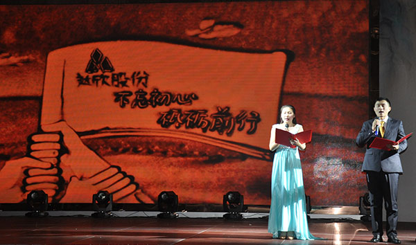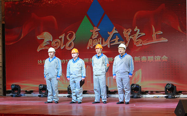 集團(tuán)高管們?cè)谂炫鹊摹拔覀冏咴诖舐飞稀甭曋屑で榈菆?chǎng),公司董事長(zhǎng)馬和軍進(jìn)行了致辭答謝。他回顧了集團(tuán)一年來所取得的輝煌成績(jī),感謝社會(huì)各界及全體達(dá)欣人的努力,并對(duì)公司的未來之路描繪了新的發(fā)展藍(lán)圖;接著,縣委書記顧國(guó)標(biāo)發(fā)表講話, 他指出,作為全縣經(jīng)濟(jì)社會(huì)發(fā)展的重要板塊,我縣建筑業(yè)總體發(fā)展態(tài)勢(shì)良好,總量和質(zhì)量穩(wěn)步提升。作為“海安建筑鐵軍”中的一支老牌“勁旅”,達(dá)欣集團(tuán)的市場(chǎng)競(jìng)爭(zhēng)力和品牌影響力不斷提升,他對(duì)公司2018年工作提出了新的希望,寄語(yǔ)未來集團(tuán)要進(jìn)一步深化企業(yè)體制機(jī)制創(chuàng)新,全面加快產(chǎn)業(yè)升級(jí)步伐,全面實(shí)施“科技強(qiáng)企”戰(zhàn)略,搶抓機(jī)遇,精準(zhǔn)定位,打造達(dá)欣更加輝煌的未來!