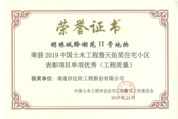 項目在建設(shè)過程中,公司領(lǐng)導(dǎo)班子帶領(lǐng)項目員工齊心協(xié)力,以打造高品質(zhì)住宅、一流住區(qū)環(huán)境為宗旨,注重工程創(chuàng)優(yōu)工作,通過精心組織、科學(xué)施工,確保了施工過程安全文明,鑄就了卓越的工程品質(zhì)。先后獲得“蘇州市姑蘇杯”、“江蘇省建筑施工標準化文明示范工地”等榮譽稱號。