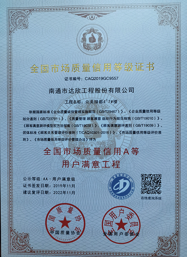 一舉獲得三項殊榮不僅僅是向外界展示了達欣集團在工程建設(shè)上的技術(shù)實力和精品工程信譽度,更是達欣集團在工程建設(shè)中以“質(zhì)量贏得市場,使企業(yè)建立較強的市場競爭力”。