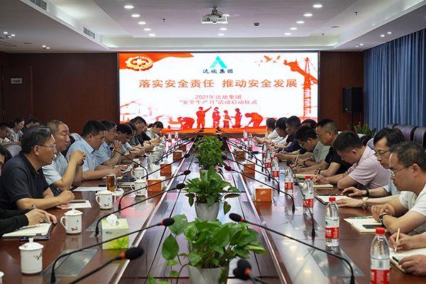 為認(rèn)真貫徹國家、行業(yè)主管部門、集團(tuán)公司的安全生產(chǎn)工作精神,提高全體職工的安全意識,5月31日,達(dá)欣集團(tuán)圍繞全國第20個“安全生產(chǎn)月”“落實安全責(zé)任,推動安全發(fā)展”主題,結(jié)合公司安全生產(chǎn)工作實際,舉行2021年達(dá)欣集團(tuán)“安全生產(chǎn)月”活動啟動儀式。集團(tuán)董事長馬和軍、公司副總、各部門負(fù)責(zé)人、第九工程公司及在海安市內(nèi)各項目經(jīng)理在主會場參會,其他工程公司在分會場以線上形式參會。本次活動由集團(tuán)常務(wù)副總經(jīng)理王邦國主持。