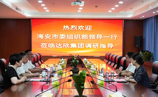 7月1日下午,海安市委常委、組織部部長、統(tǒng)戰(zhàn)部部長錢旭東,“兩新”工委書記、組織部常務副部長吳蘭,赴集團調研指導。集團董事長馬和軍、黨委書記劉厚純等陪同。