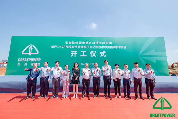 許華為書記宣布安徽格派鋰電循環(huán)科技有限公司高性能鋰離子電池前軀體關鍵原材料項目正式開工。