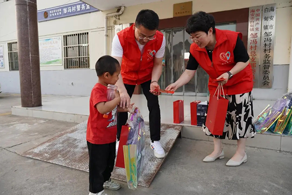 5月31日,在“六·一”國際兒童節(jié)到來之際,達欣集團·魯班傳人志愿服務總隊來到白甸鎮(zhèn)鄒馮村開展“欣愛童”關愛行動,集團總經理王邦國,黨委副書記陳春紅,團委書記錢美澄參加。
