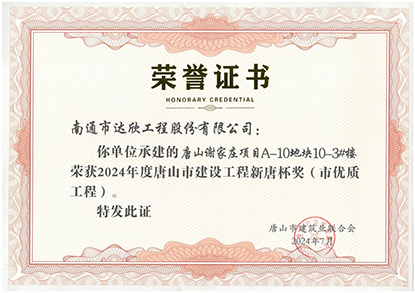 近日,由第六工程公司承建的唐山謝家莊項目A-10地塊10-3#樓、唐山謝家莊項目A-14地塊14-3#樓、14-5#樓榮獲“2024年度唐山市建設(shè)工程新唐杯獎(市優(yōu)質(zhì)工程)”。