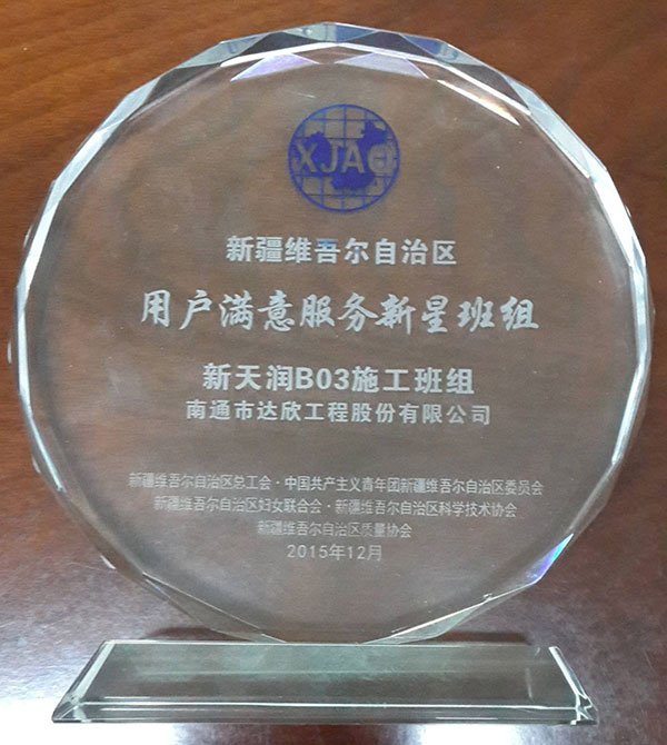 第十一工程公司新疆新天潤(rùn)B03項(xiàng)目部,憑借可靠的產(chǎn)品質(zhì)量、較高的社會(huì)美譽(yù)度贏得了用戶和業(yè)主的滿意,通過了2015年度新疆維吾爾自治區(qū)總工會(huì)、中國共青團(tuán)新疆維吾爾自治區(qū)委員會(huì)、新疆維吾爾自治區(qū)婦女聯(lián)合會(huì)、新疆維吾爾自治區(qū)科學(xué)技術(shù)協(xié)會(huì)、新疆維吾爾自治區(qū)質(zhì)量協(xié)會(huì)共同組織的專家組現(xiàn)場(chǎng)審核、答辯,成功獲得了新疆維吾爾自治區(qū)全區(qū)、全行業(yè)競(jìng)爭(zhēng)中建筑業(yè)唯一的“用戶滿意服務(wù)之星新星班組”的光榮稱號(hào)(全區(qū)共獲得12個(gè)新星班組),充分證明了我公司的綜合實(shí)力和業(yè)界廣大客戶對(duì)我公司產(chǎn)品的認(rèn)可。