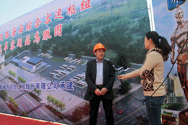 在開(kāi)工儀式后,馬董事長(zhǎng)現(xiàn)場(chǎng)接受了海安電視臺(tái)的采訪,代表公司向全縣人民承諾,要把本項(xiàng)目作為公司的重點(diǎn)工程、形象工程展示給全縣人民,做到抓質(zhì)量精益求精,抓進(jìn)度一絲不茍,抓安全防微杜漸,以一流的素質(zhì),一流的服務(wù),一流的技術(shù),打造出優(yōu)質(zhì)的精品工程回饋家鄉(xiāng)人民。