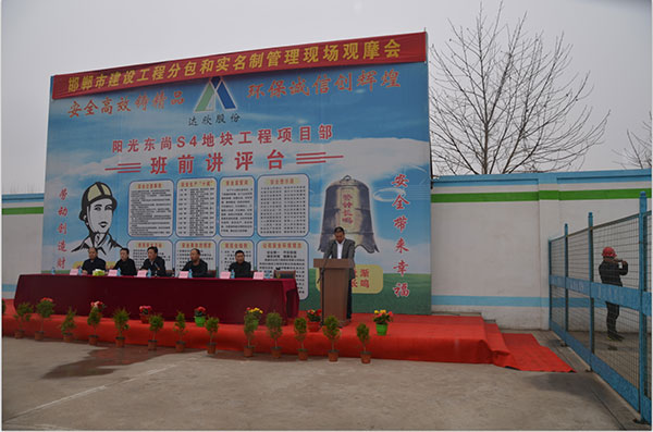 邯鄲市建管辦副主任連書民主持會議。建管辦勞務分包管理處處長郭長印宣讀了“邯鄲市建設工程分包和實名制管理實施意見”。工程公司經理陳仁富同志在會上作“加強勞務分包管理,規(guī)范勞務隊伍行為”的經驗交流。會后,陳仁富同志就我公司實名制用工管理,農民工工資發(fā)放等接受了邯鄲電視臺采訪。