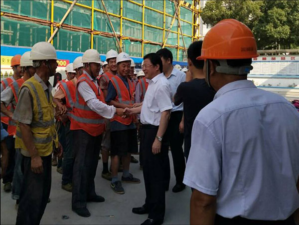 在施工現(xiàn)場,顧縣長看望了在高溫酷暑下作業(yè)的一線施工人員,親切和工人們握手,送上防暑降溫用品,對職工們的辛勤勞動表示由衷地感謝,并再三叮囑工人們在高溫天氣要注意身體,合理安排作息時間,切實做好防暑降溫和安全生產(chǎn)工作。