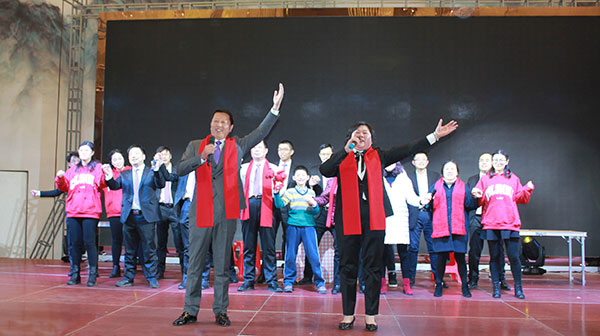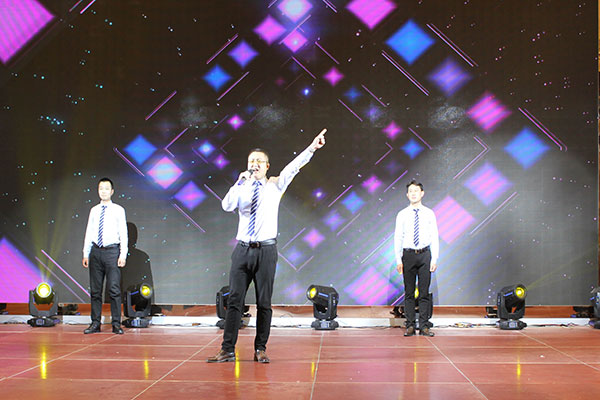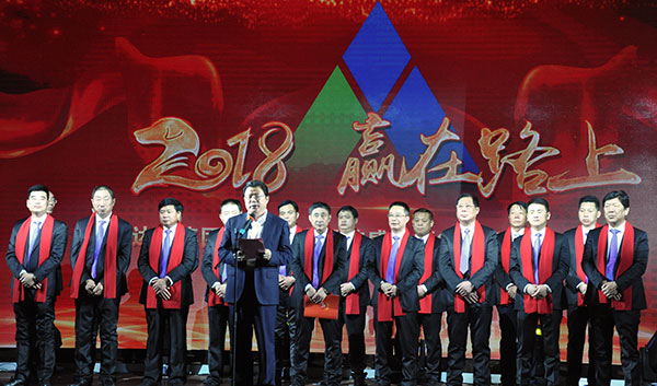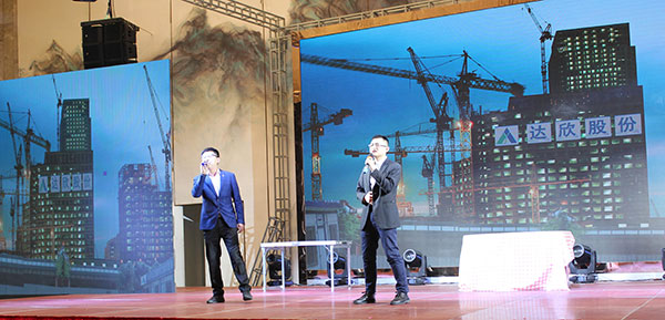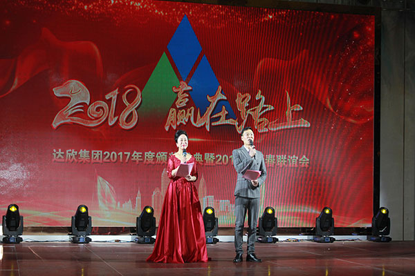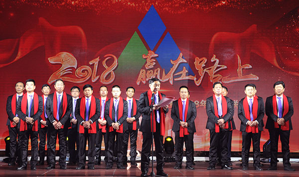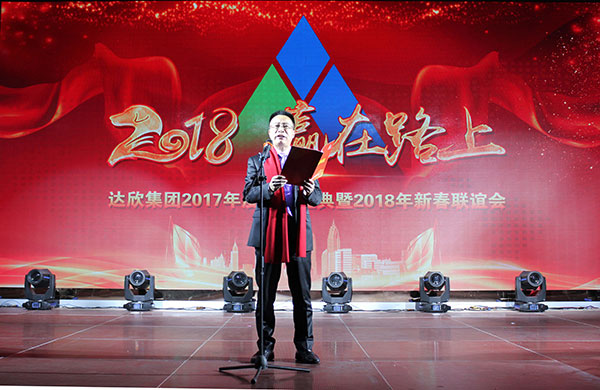集團(tuán)高管們?cè)谂炫鹊摹拔覀冏咴诖舐飞稀甭曋屑で榈菆?chǎng),公司董事長(zhǎng)馬和軍進(jìn)行了致辭答謝。他回顧了集團(tuán)一年來所取得的輝煌成績(jī),感謝社會(huì)各界及全體達(dá)欣人的努力,并對(duì)公司的未來之路描繪了新的發(fā)展藍(lán)圖;接著,縣委書記顧國(guó)標(biāo)發(fā)表講話, 他指出,作為全縣經(jīng)濟(jì)社會(huì)發(fā)展的重要板塊,我縣建筑業(yè)總體發(fā)展態(tài)勢(shì)良好,總量和質(zhì)量穩(wěn)步提升。作為“海安建筑鐵軍”中的一支老牌“勁旅”,達(dá)欣集團(tuán)的市場(chǎng)競(jìng)爭(zhēng)力和品牌影響力不斷提升,他對(duì)公司2018年工作提出了新的希望,寄語(yǔ)未來集團(tuán)要進(jìn)一步深化企業(yè)體制機(jī)制創(chuàng)新,全面加快產(chǎn)業(yè)升級(jí)步伐,全面實(shí)施“科技強(qiáng)企”戰(zhàn)略,搶抓機(jī)遇,精準(zhǔn)定位,打造達(dá)欣更加輝煌的未來!