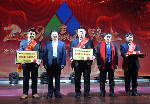 集團(tuán)黨委書記劉厚純宣讀了表彰決定, 縣領(lǐng)導(dǎo)為獲得集團(tuán)2017年度的項(xiàng)目標(biāo)桿、達(dá)欣工匠、青年標(biāo)兵等先進(jìn)代表進(jìn)行了頒獎(jiǎng)。