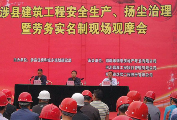 住建局局長張玉斌對我公司在御湖天城建筑安全施工、揚(yáng)塵整治暨勞務(wù)實名制的做法,給予高度肯定。 他表示,我們公司在安全管理、揚(yáng)塵治理及勞務(wù)實名制的做法為涉縣其他各單位的現(xiàn)場安全管理、揚(yáng)塵治理及有效地維護(hù)農(nóng)民工權(quán)益指明了方向和途徑。