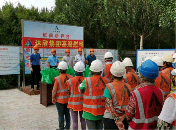 集團(tuán)公司領(lǐng)導(dǎo)一行深入項(xiàng)目工地,詳細(xì)詢問了工程項(xiàng)目建設(shè)情況及項(xiàng)目部高溫施工防護(hù)措施, 并囑咐項(xiàng)目責(zé)任人在當(dāng)前高溫的不利條件下,采取有效的防暑降溫措施,確保安全生產(chǎn)。