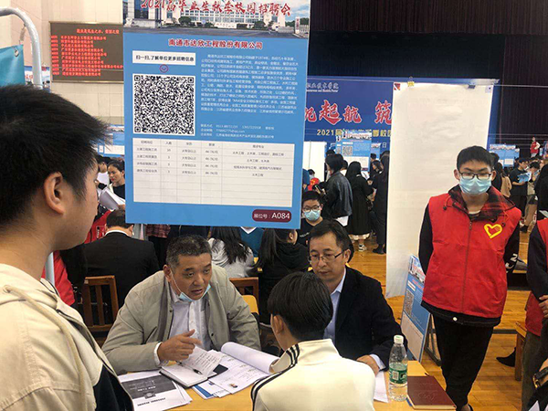 近日,第八工程公司組織參加了湖南省水利水電職業(yè)技術學院2021屆畢業(yè)生秋季大型校園招聘會。會上,通過積極推薦及宣傳,有許多優(yōu)秀畢業(yè)生對我司頗感興趣,紛紛表示有意向來公司就職,有些學生甚至得到老師的推薦專程來我司展位臺應聘。我們將積極而為,通過此次招聘雙向選擇,為企業(yè)選用優(yōu)秀的畢業(yè)生,助力企業(yè)高質量發(fā)展提供人才保障。
