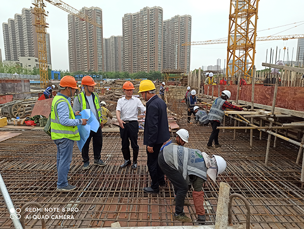 劉書記對項目現(xiàn)場進行了全面的實地考察。檢查過程中,項目負責人崔益明就工程重難點、進展情況及下一步施工安排向劉書記進行了匯報,劉書記對項目前期開展所做的工作表示了肯定,同時強調(diào)項目部要繼續(xù)加強現(xiàn)場管控,統(tǒng)籌做好安全、質(zhì)量、工期、文明等工作,科學調(diào)度,合理安排,保證施工任務順利進行,努力爭創(chuàng)優(yōu)質(zhì)工程、文明示范工程。