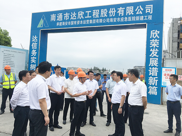 8月25日下午,海安市委副書記、市長譚真率隊來到海安市應急醫(yī)院新建工程項目,開展“月月看、家家到”活動,對項目推進情況進行實地考察。海安市人大常委會主任張亞曦,市政協(xié)主席李春旺等市四套班子主要領導、各相關部門及各區(qū)鎮(zhèn)主要負責人陪同調研,集團領導劉厚純、王邦國等參加活動。