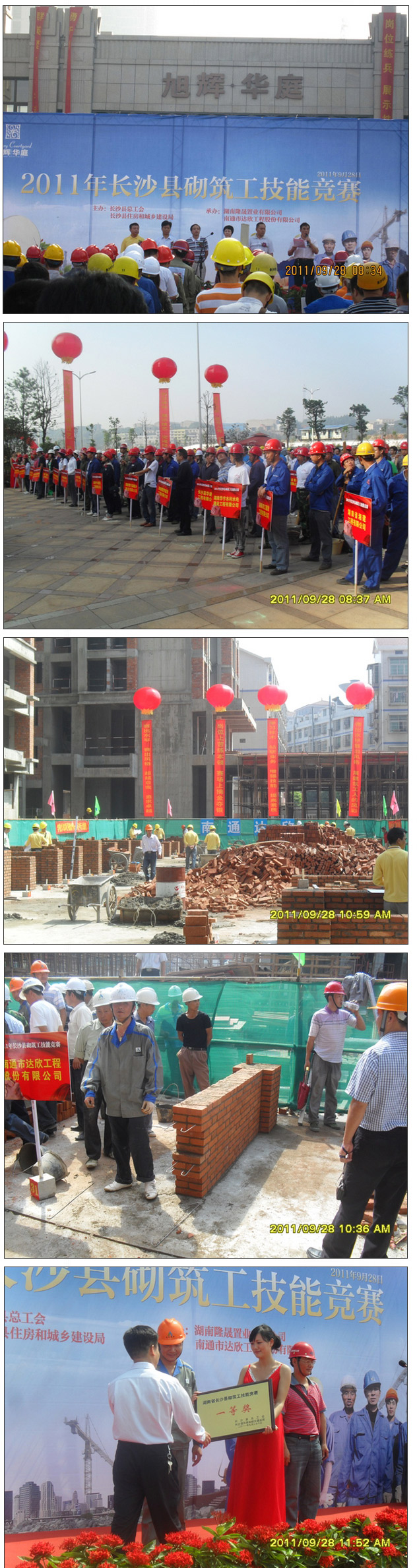 9月28日上午,秋高氣爽、丹桂飄香,由長沙縣總工會、長沙縣住房和城鄉(xiāng)建設局主辦,湖南隆晟置業(yè)有限公司和我公司承辦的 2011年長沙縣砌筑工技能競賽活動圓滿落幕。第一工程公司長沙旭輝?華庭項目部選手方子星一舉奪冠,榮獲參賽單位集體一等獎。