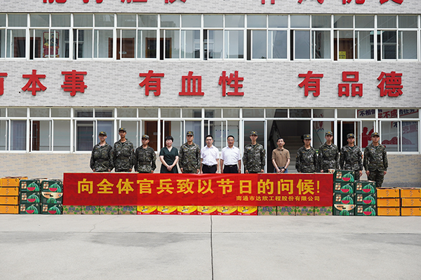 為慶祝中國人民解放軍建軍96周年,大力弘揚愛軍擁軍的光榮傳統,推動軍民融合發(fā)展,7月31日,達欣集團黨委、工會聯合海安市人武部組織魯班傳人志愿服務隊成員來到武警南通支隊執(zhí)勤二大隊海安中隊開展“愛國擁軍‘欣’向黨,共敘軍民魚水情”擁軍慰問活動,集團在海領導劉厚純、楊靜參加活動。