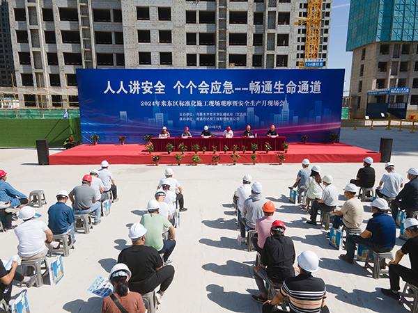6月20日,由烏魯木齊市米東區(qū)建設(shè)局主辦的2024年米東區(qū)標準化施工現(xiàn)場觀摩暨安全生產(chǎn)月現(xiàn)場會在第十一工程公司承建的會展吾悅廣場五期項目舉行。米東區(qū)副區(qū)長馬連營,區(qū)應(yīng)急管理局局長鄒波,區(qū)建設(shè)局局長、黨組副書記姜磊;卡子灣街道辦事處主任周疆艷,區(qū)質(zhì)量安全監(jiān)督站站長宮強,區(qū)質(zhì)量安全監(jiān)督站全體工作人員,第三方專家以及全區(qū)建設(shè)、監(jiān)理、施工單位負責(zé)人共計200余人、60多家建筑施工單位代表參加了此次觀摩會。