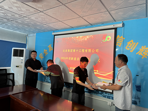 項目技術負責人卜飛飛介紹了第十工程公司發(fā)展歷程及云墅府項目基本情況;項目經(jīng)理陳伯根結合自身工作,圍繞如何快速轉(zhuǎn)換角色,如何盡快融入達欣大家庭,如何在達欣集體中快速成長,對新入職大學生提出中肯的建議;魯班傳人志愿服務第十分隊隊長邵鵬偉分享了自身在公司的發(fā)展和心路歷程。