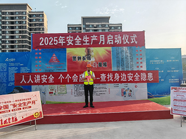 6月2日上午,第十一工程公司以“人人講安全,個個會應(yīng)急—查找身邊安全隱患”為主題的安全生產(chǎn)月啟動儀式,在錦玉滿堂項(xiàng)目舉行。工程公司總經(jīng)理、副經(jīng)理、各科室負(fù)責(zé)人、在疆各項(xiàng)目部項(xiàng)目經(jīng)理、技術(shù)負(fù)責(zé)人、安全員以及錦玉滿堂項(xiàng)目全體職工參加了啟動儀式,活動由工程公司安全科徐斌主持。