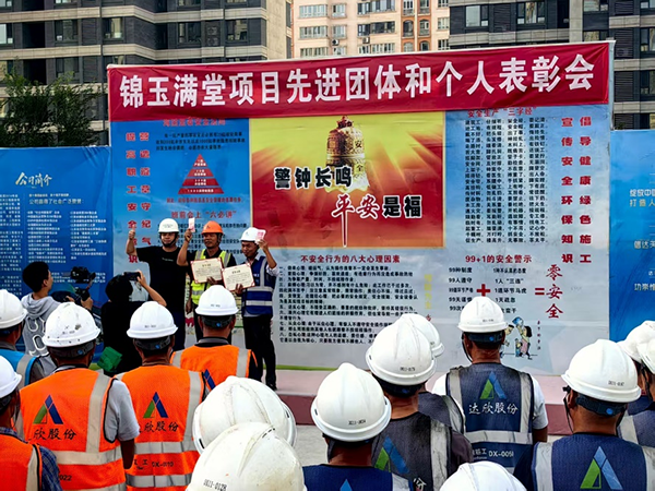 新疆融科地產(chǎn)有限公司對達欣項目部積極配合達到預售條件給予肯定,頒發(fā)了節(jié)點滿意獎,獎勵現(xiàn)金10000元;對兩個水電安裝班組采用有效的定位措施,保證了線盒、電箱等與混凝土面貼合無凹陷,頒發(fā)了優(yōu)秀施工班組獎,各獎勵現(xiàn)金5000元;項目部徐仁年同志提出樓梯踏步圓弧做法,對成品保護及觀感質(zhì)量提升取得很好成效;鋼筋班組長張旭在施工中合理組織施工人員,按施工進度要求,準時完成各項工作計劃,分別頒發(fā)了優(yōu)秀個人獎,各獎勵現(xiàn)金2000元。