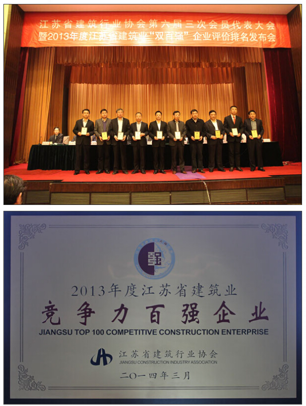經(jīng)評審委員會初審、統(tǒng)計、公示、核審,南通市達欣工程股份有限公司入選2013年度江蘇建筑業(yè)企業(yè)競爭力百強,排名第35位,與2012年度相比,公司綜合競爭力穩(wěn)步提升,公司董事長馬和軍作為江蘇建筑業(yè)優(yōu)秀企業(yè)家代表上臺領(lǐng)獎。江蘇建筑業(yè)企業(yè)“雙百強”評比是根據(jù)企業(yè)經(jīng)營規(guī)模、資產(chǎn)規(guī)模、盈利能力、員工構(gòu)成、科技進步、管理水平、精神文明等八個指標體系綜合評比產(chǎn)生的,它代表了企業(yè)的綜合競爭力水平。