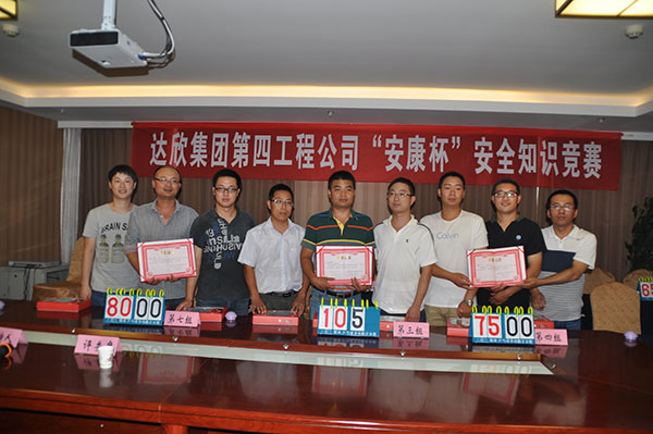 各項(xiàng)目部在建筑物上懸掛安全生產(chǎn)宣傳標(biāo)語24條幅;組織廣大職工觀看建筑施工中的事故案例,結(jié)合施工過程中的實(shí)際情況進(jìn)行分析點(diǎn)評;對全體職工進(jìn)行了血壓檢測;舉行了“安全生產(chǎn)月”主題簽名活動(dòng)。工程公司于6月8、9日在留村項(xiàng)目部組織所有在崗管理人員進(jìn)行了安全知識(shí)培訓(xùn)。6月22日工程公司舉行了“安康杯”安全知識(shí)競賽,24名選手分8組參賽。經(jīng)過必答題、搶答題、附加題3個(gè)環(huán)節(jié)的比拼,最終眾美綠都項(xiàng)目部以領(lǐng)先笫二名25分的優(yōu)勢獲得冠軍,拉斐小鎮(zhèn)、留村莊園A區(qū)分獲二、三名。通過以上活動(dòng)的開展,進(jìn)一步提高了廣大職工的安全生產(chǎn)知識(shí)和安全意識(shí),確保安全生產(chǎn)。